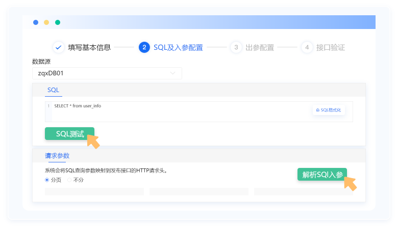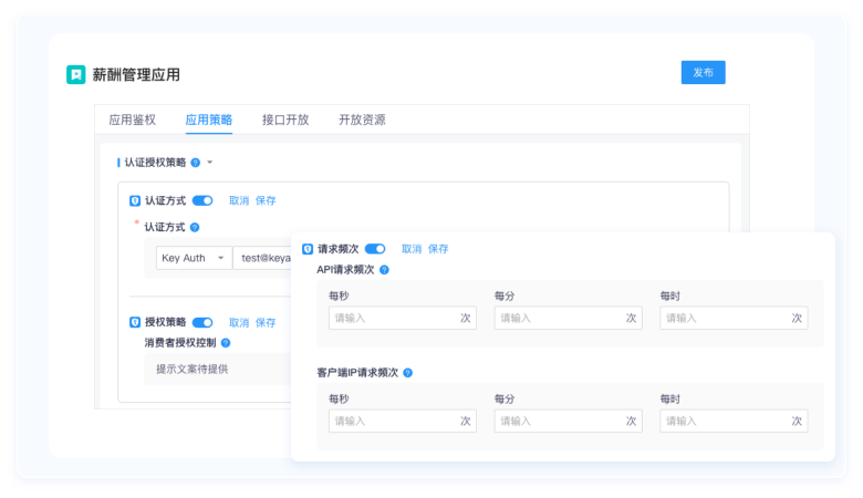 将已有后端服务(API)通过在线可视化配置的方式注册到平台上,实现业务能力和数据的简单、快速、安全开放。