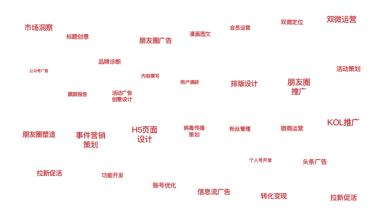 基于方案的需求,制作图文、新闻、视频、海报、H5等等辅助后续传播裂变过程的所有内容的输出 -