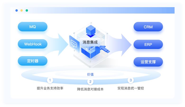 开发效率搭建企业统一、可扩展的集成平台,实现内部系统互联互通
